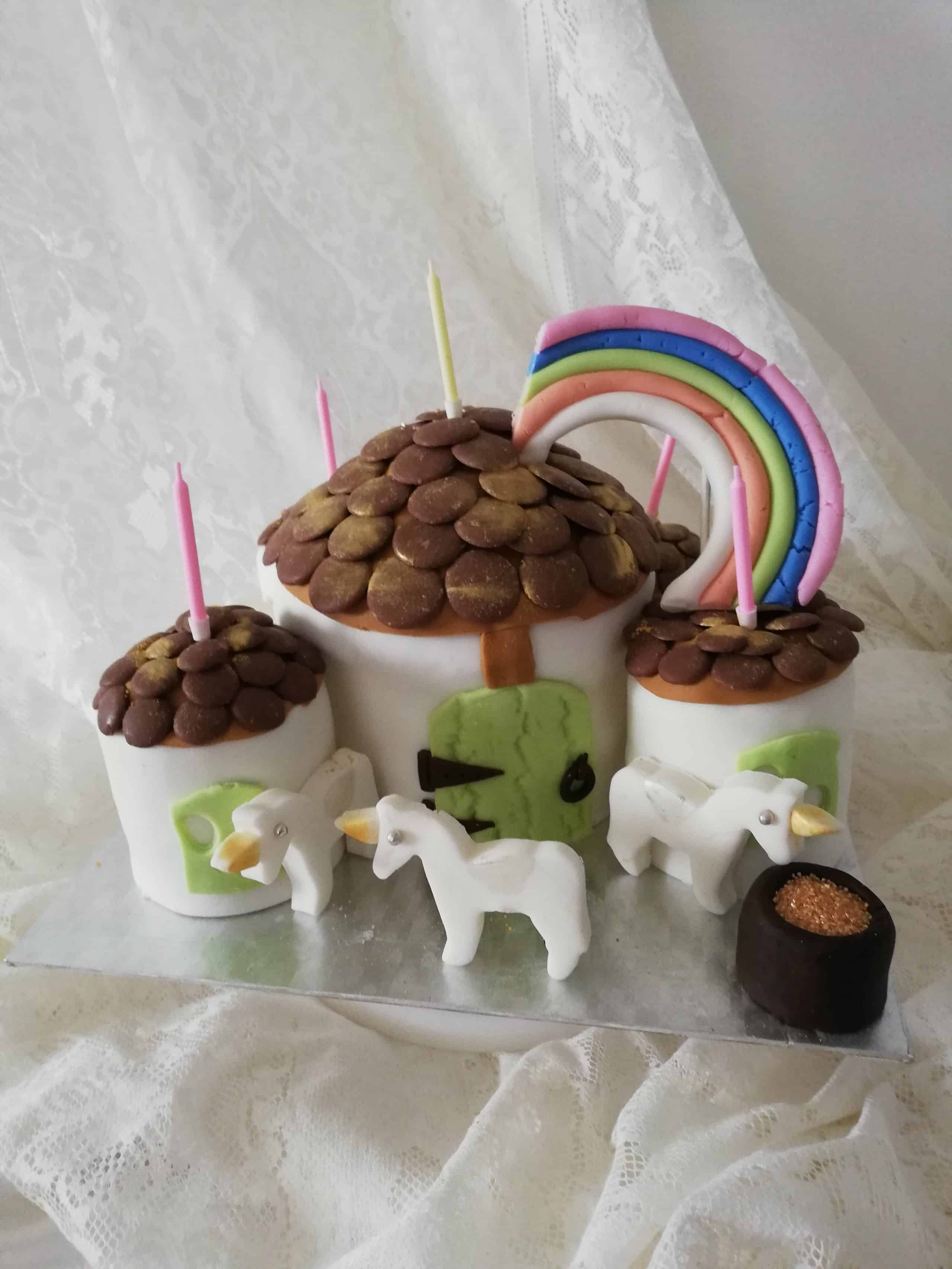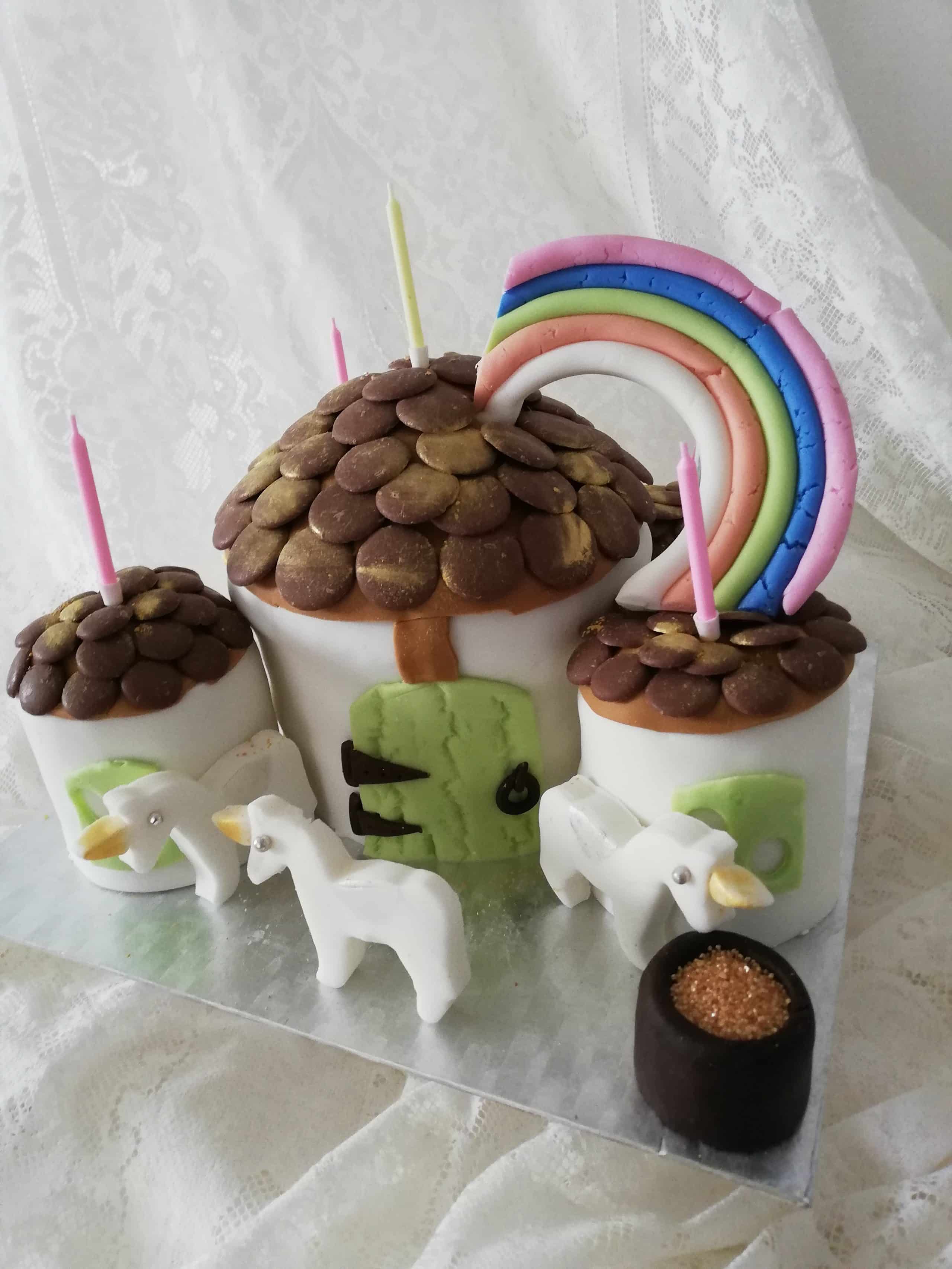All the doors, windows, the pot of gold, the rainbow and the unicorn family are all lovingly handmade.